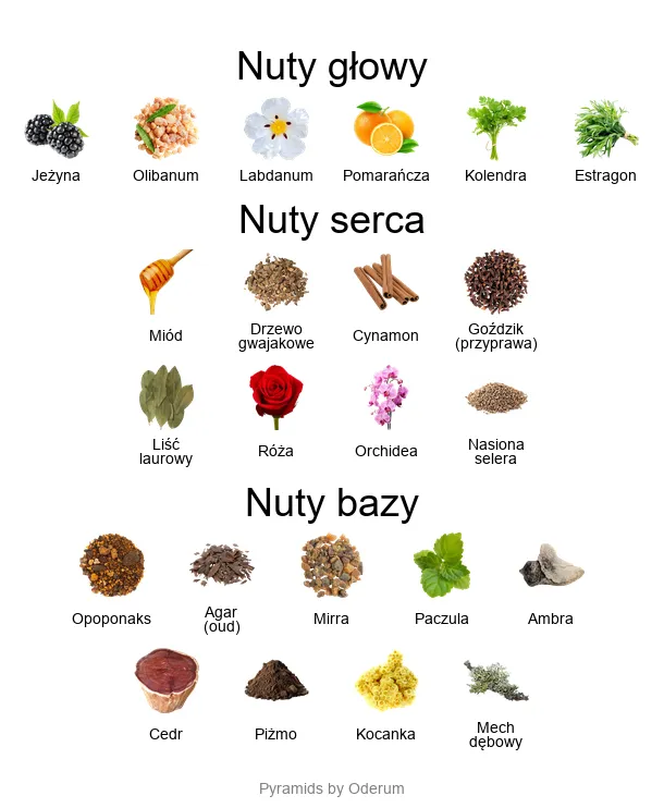 To, co zostaje z tobą najdłużej, to spektakularna baza: oud, mirra, ambra, opoponaks, a także ziemisty mech dębowy i ciepła paczula. Kocanka i cedr tworzą suchy, elegancki fundament, a piżmo łączy wszystko w harmonijną całość.