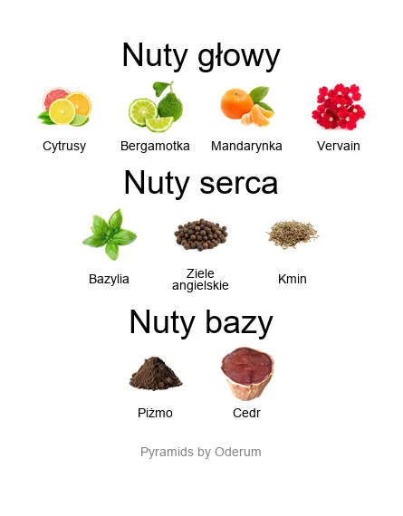 - Nuty serca: bazylia, ziele angielskie, kmin – aromatyczne, ziołowo-przyprawowe serce z eleganckim charakterem