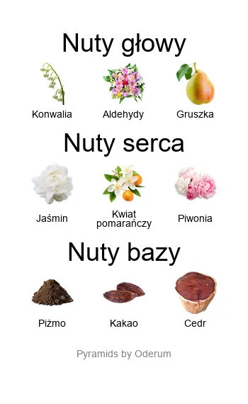 Serce zapachu to kwiatowa symfonia, w której każdy akord jest starannie dobrany, aby tworzyć wielowymiarowy i harmonijny efekt. Jaśmin wprowadza klasyczną elegancję i delikatną zmysłowość, natomiast Kwiat pomarańczy dodaje słonecznego blasku i subtelnej słodyczy. Piwonia wzbogaca serce zapachu pudrową miękkością i romantycznym charakterem, który subtelnie kontrastuje z owocowym i aldehydowym otwarciem. Kompozycja serca rozwija się stopniowo na skórze, odsłaniając kolejne warstwy aromatyczne i emocjonalne – od świeżości i lekkości, po zmysłową głębię i elegancję, która sprawia, że perfumy stają się wyjątkowo harmonijne i wciągające.