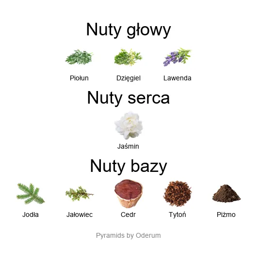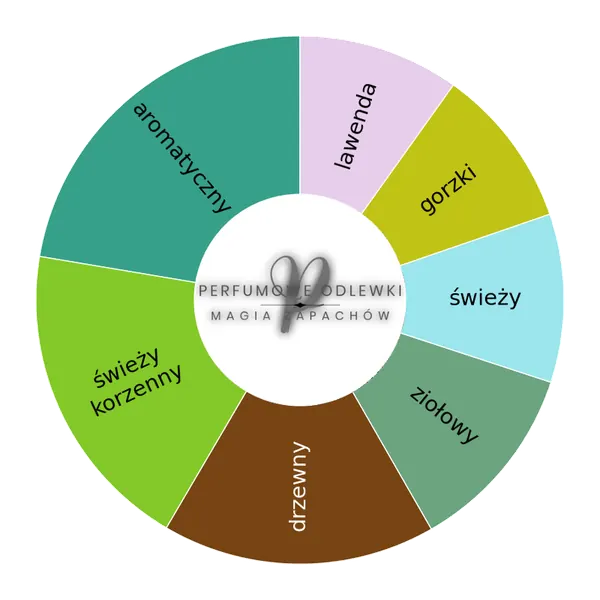 Zapach zaczyna się od intensywnego akordu piołunu i dzięgla, które wprowadzają nutę nieco gorzką, ale pełną życia i energii. Do tego dołącza świeża, ziołowa lawenda – klasyk, który tutaj nabiera leśnej, niemal surowej głębi.